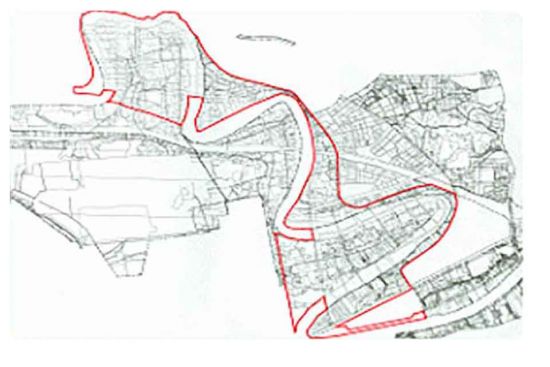 「舊宗段」位屬基隆河中山橋至成美橋段河道整治地區,本案區段徵收範圍東至成美橋,西至中山橋,南至玉成堤防、塔悠路擋水牆、高速公路路堤及松山堤防,北至大直堤防及民國 67 年間公告之內湖堤線。區段徵收開發面積:約555.1254公頃,取得公共設施用地面積:427.5395公頃,取得建築用地面積:127.5859 公頃。